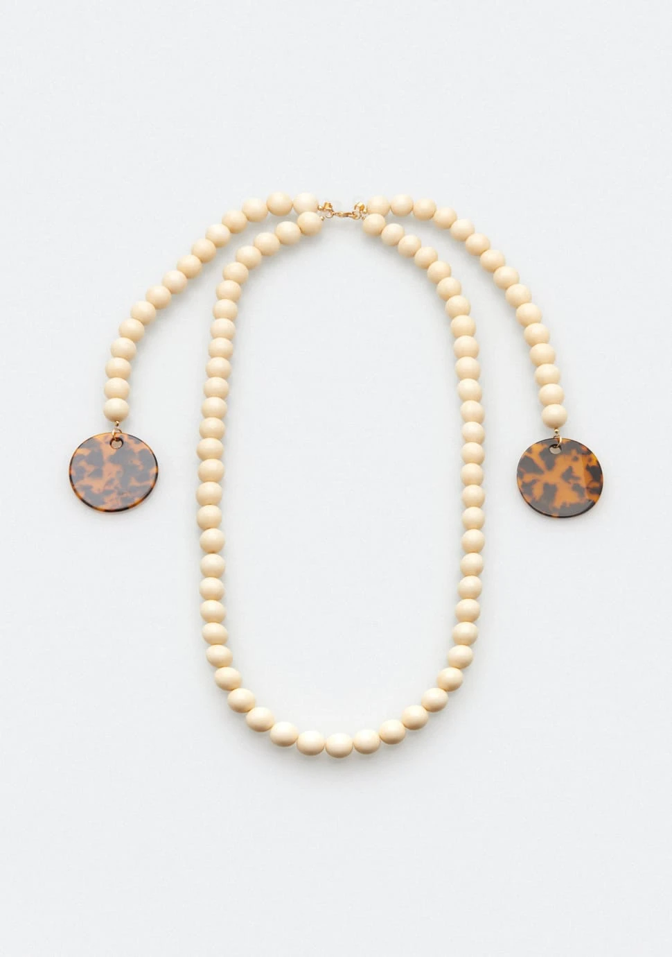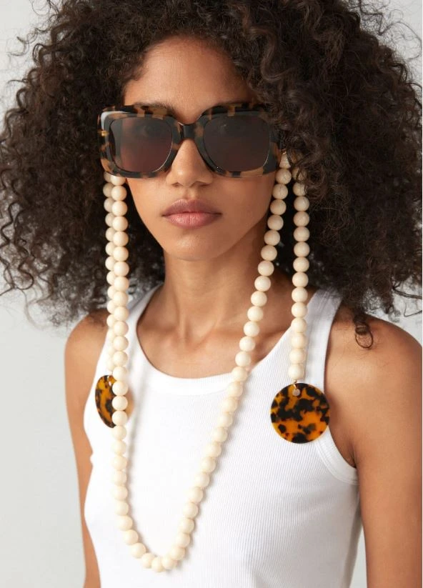 Beautifully finished chain of ivory resin beads and Havana acetate pendants in tortoiseshell style finish. A perfect luxury combination of statement and timeless elegance. With a double hook to hold the glasses, give added security and comfort.Â