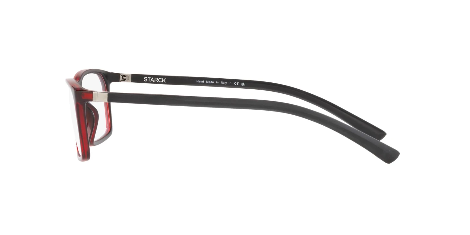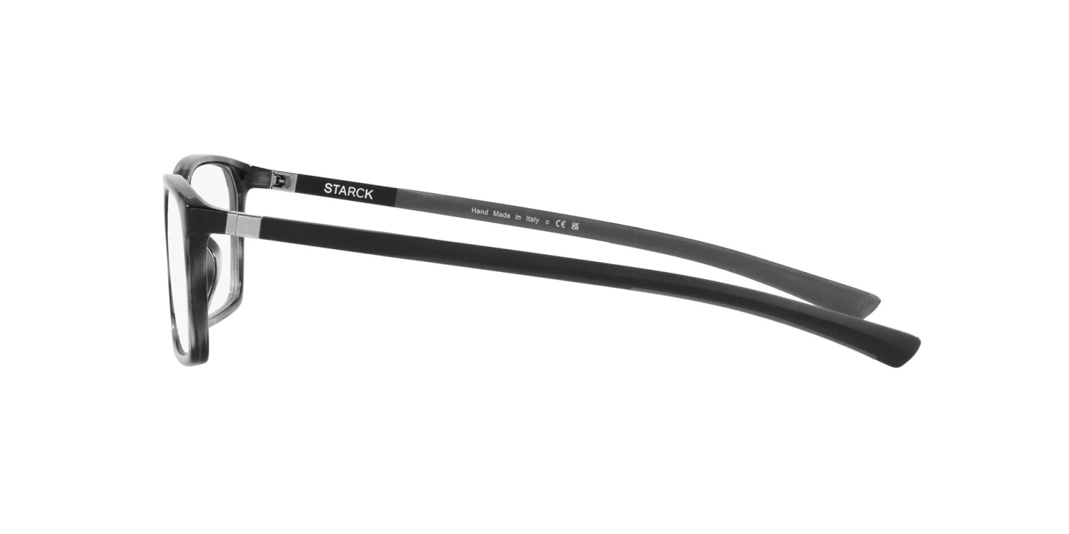 All Starck eyewear is made from organic resources. The cellulose-acetate frames are derived from wood. The screwless hinges on the frames are supposed to resemble the joints of the human body, the shoulder joint to be exact. Inspired by the human body, all designs are created to be ergonomic and provide wearers with the most comfortable fit and feel.